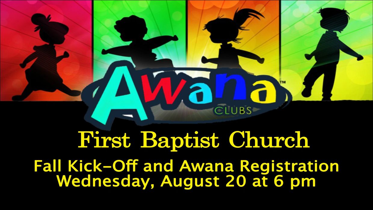 We are excited for another year of Awana at First Baptist! This year Awana begins with in-person registration on Wednesday, August 20 with free bounce houses, hamburgers, hot dogs, popcorn, and popsicles! Our regular Awana activities begin on Wednesday, August 27.